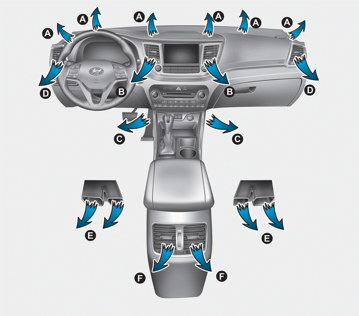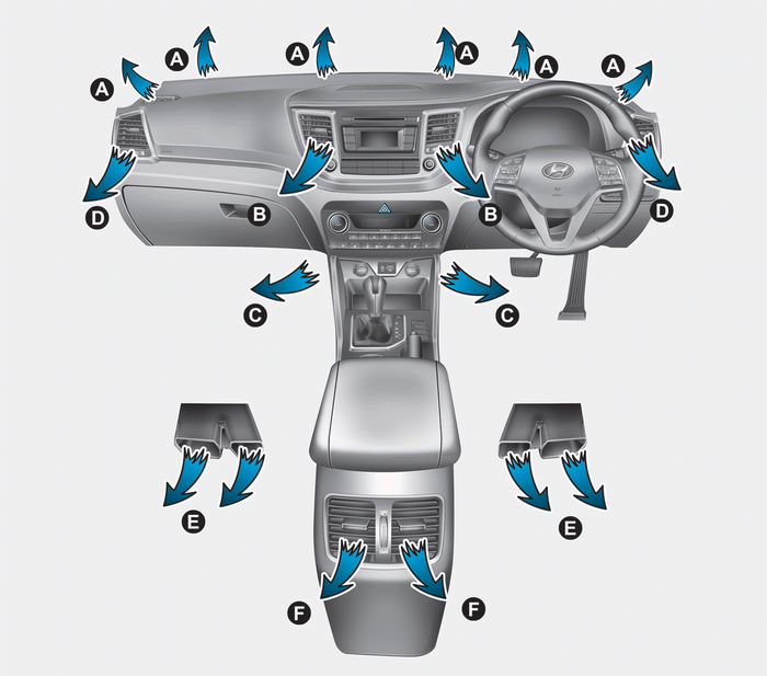Большая часть воздушного потока направлена в сторону земли, а небольшая часть воздуха направляется на обогреватели ветрового и боковых стекол.