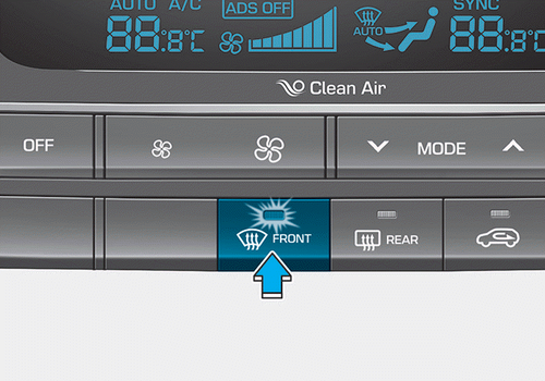 Большая часть воздушного потока направлена на лобовое стекло, а небольшая часть воздух направляется на обогреватели боковых стекол.