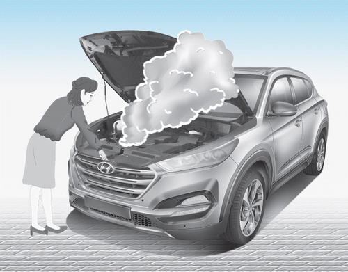 5. В случае утечки охлаждающей жидкости двигателя немедленно заглушите двигатель. двигатель и обратитесь к авторизованному дилеру HYUNDAI.