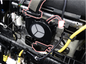 Снимите блок сиденья с вентиляцией (А), отсоединив разъемы.