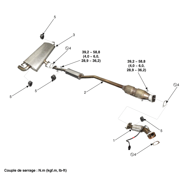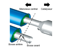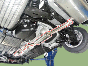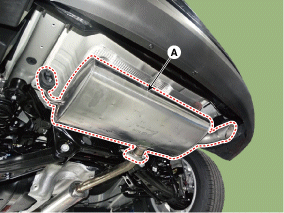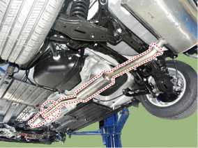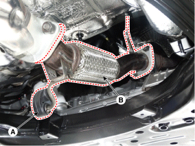 Снимите каталитический нейтрализатор и центральный глушитель в сборе (А).