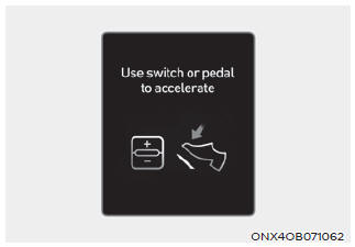 Если вы хотите временно ускорить без изменения заданной скорости во время Интеллектуальный круиз-контроль работает, нажмите педаль акселератора. В то время педаль акселератора нажата, набор скорость, уровень расстояния и целевое расстояние будет мигать на кластере.