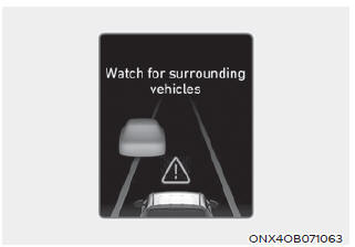 В следующей ситуации предупреждающее сообщение окружающих транспортных средств появляется на кластере, и слышимый предупредительные звуки, предупреждающие водителя о дорожные условия впереди.