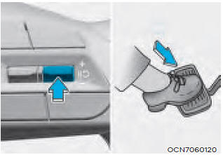Если ваш автомобиль оснащен ручным Assist Limit Assist, нажмите и удерживайте кнопку Кнопка помощи при вождении для отключения Smart Круиз-контроль. Тем не менее, ручная скорость Включится функция Limit Assist.
