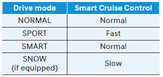 Умный круиз-контроль изменится ускорение в зависимости от режима движения выбран из интегрированного режима привода Система контроля. См. следующее диаграмма.