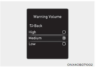 При включенном двигателе выберите «Помощь водителю> Громкость предупреждений» в Меню настроек для изменения предупреждения Громкость на «Высокий», «Средний» или «Низкий» для Умный круиз-контроль.