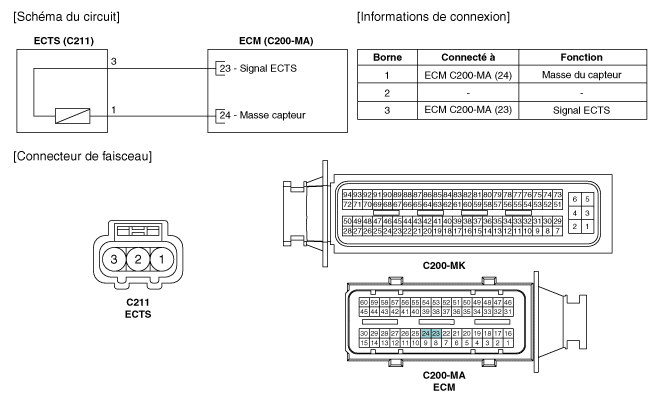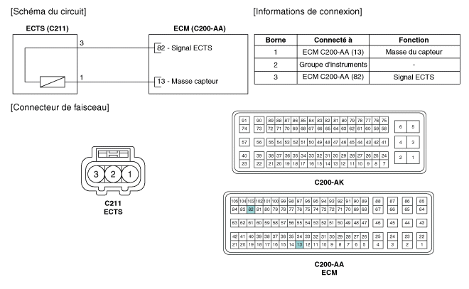Руководство по обслуживанию и ремонту Hyundai Tucson: ДАТЧИК ТЕМПЕРАТУРЫ ОХЛАЖДАЮЩЕЙ ЖИДКОСТИ ДВИГАТЕЛЯ (ECTS)