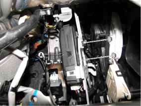 Отсоедините антенный кабель (А) и разъемы от блока СМК.