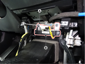 Отсоедините отрицательную (-) клемму аккумуляторной батареи.
