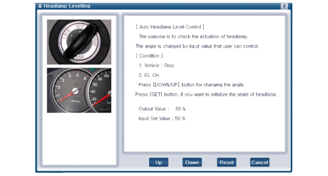 Выберите модель автомобиля и «систему регулировки угла наклона фар».