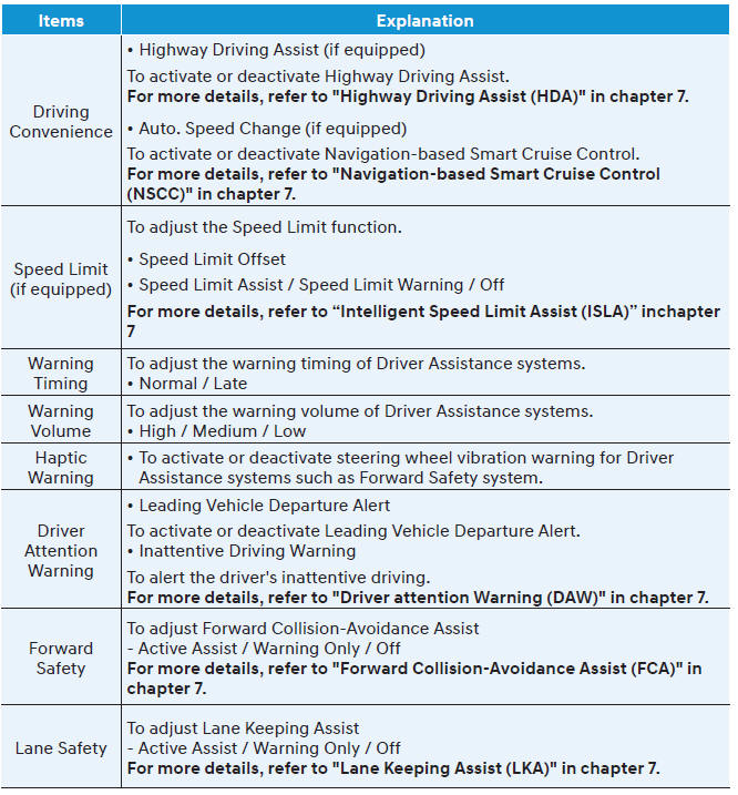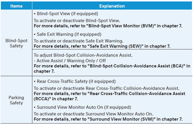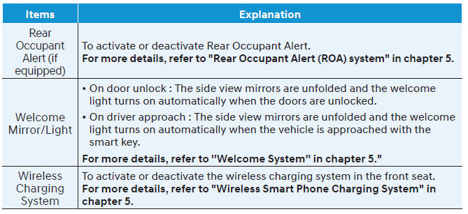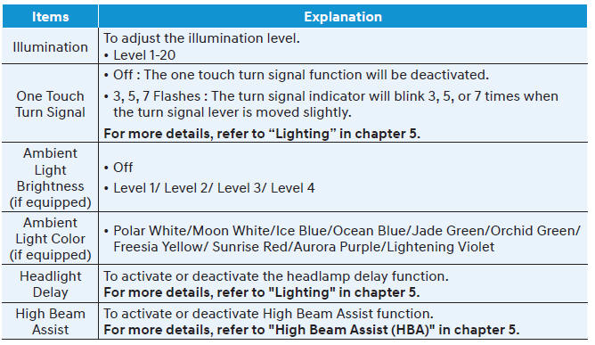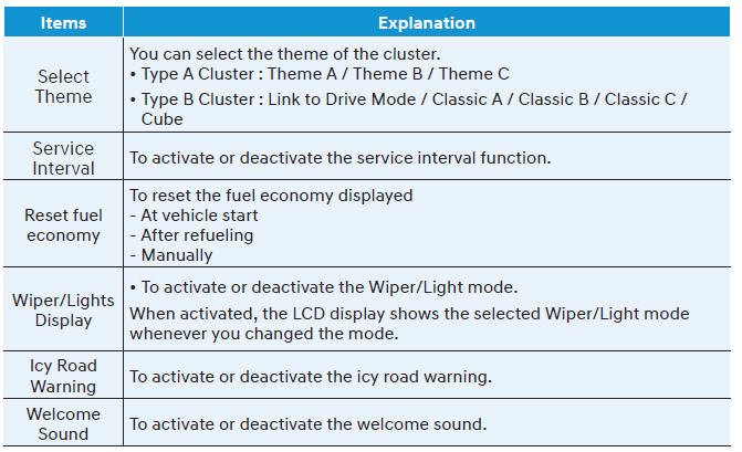 Для использования меню сервисных интервалов обратитесь к авторизованному дилеру HYUNDAI. Если сервисный интервал активирован, а время и расстояние отрегулированы, сообщения отображаются в следующих ситуациях каждый раз при включении автомобиля.