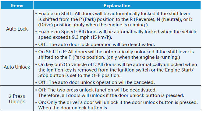 В этом режиме вы можете изменить настройки комбинации приборов, дверей, лампы и т.д.