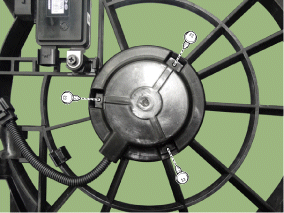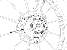 Ослабьте винты, затем снимите двигатель вентилятора (А) с дефлектора.
