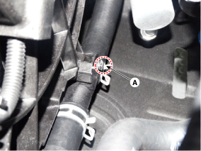 Отверните болт нижнего крепления кронштейна шланга радиатора.