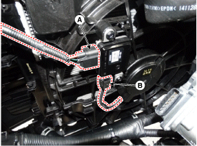Отсоедините разъем двигателя вентилятора (А) от ШИМ.