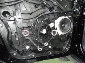 Отделите отверстие монтажной заглушки (А) от модуля передней двери.