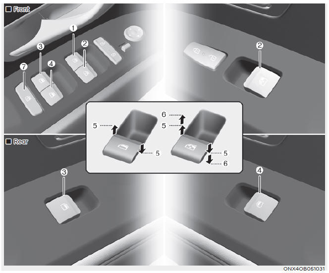 (1) Переключатель электрического стеклоподъемника двери водителя