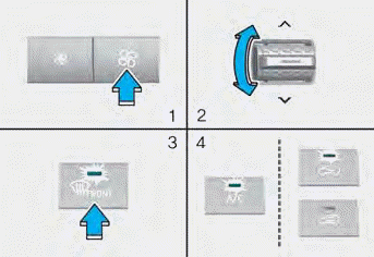 Если кондиционер, положение наружного (свежего) воздуха и более высокая скорость вентилятора не выбран автоматически, отрегулируйте соответствующую кнопку или ручку вручную.