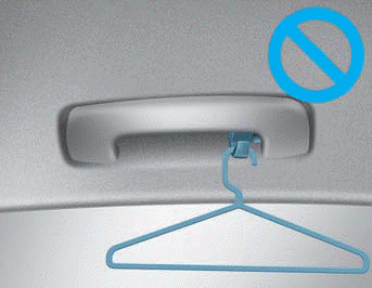 Не вешайте другие предметы, такие как вешалки или твердые предметы, кроме одежды. Также не кладите в карманы одежды тяжелые, острые или бьющиеся предметы. В несчастный случай или раскрытие шторки безопасности может привести к повреждению автомобиля или личный вред.