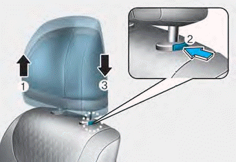 1. Нажмите и удерживайте кнопку фиксатора (2) на опоре подголовника.