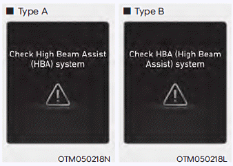 Если система управления дальним светом не работает должным образом, отображается сообщение «Проверьте систему управления дальним светом (HBA)».