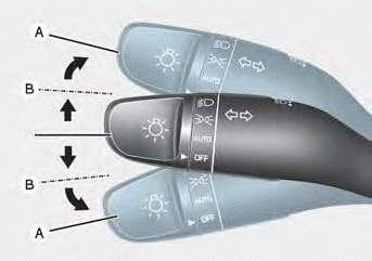 Чтобы использовать сигнал поворота одним касанием, переместите рычаг указателя поворота вверх или вниз в положение (B), а затем отпустите его.