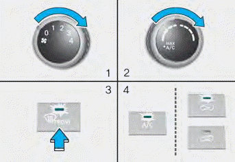 4. Будет выбран внешний (свежий) воздух и кондиционер (при наличии). автоматически.