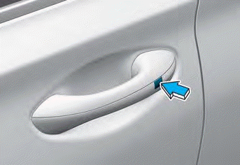 Чтобы отпереть двери, нажмите кнопку на внешней ручке двери, неся смарт-ключ с собой или нажмите кнопку отпирания двери на смарт-ключе.