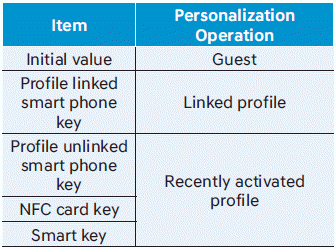 Подключите зарегистрированный цифровой ключ к персональному профилю. Тогда на случай, если вы заблокировать или открыть дверь с помощью цифрового ключа с функцией NFC или открыть дверь удаленно с помощью Bluetooth-соединения с цифровым ключом, автомобиль будет воспроизводить персонализированный настройки профиля пользователя. Подключение профиля и персонализация доступны для Водитель 1 и Водитель 2.