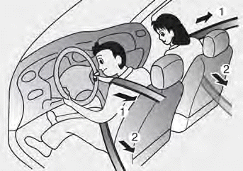 Когда автомобиль внезапно останавливается или пассажир пытается наклониться вперед быстро натяжитель ремня безопасности зафиксируется в нужном положении. В определенных лобных или при боковом столкновении сработает преднатяжитель и натянет ремень безопасности сильнее контакт с телом пассажира.