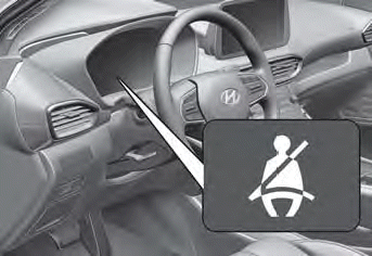 В качестве напоминания водителю загорается сигнальная лампа непристегнутого ремня безопасности. примерно 6 секунд каждый раз, когда вы переводите ключ зажигания в положение ON независимо от ремня. В это время, если ремень безопасности не пристегнут, предупреждение звуковой сигнал будет звучать в течение 6 секунд. Если вы продолжаете не пристегивать ремень безопасности и если вы едете со скоростью более 6 миль/ч (9 км/ч), сигнальная лампа будет продолжать гореть.