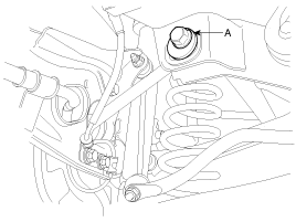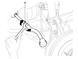 Отрегулируйте схождение задних колес, повернув болт кулачка заднего вспомогательного рычага (A).