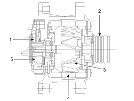 Основными компонентами генератора являются ротор, статор, выпрямитель, конденсаторные щетки, подшипники и шкив поликлинового ремня.
