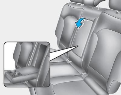 Подлокотник расположен в центре заднего сиденья. Потяните подлокотник вниз со спинки сиденья, чтобы использовать его.