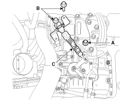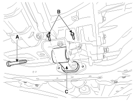 Снимите автоматическую коробку передач с помощью домкрата, предварительно отвернув болт крепления (A-1 шт., B-3 шт.).