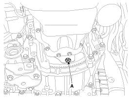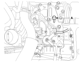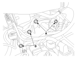 Снимите верхний крепежный болт автоматической коробки передач (A-2ea) и крепежный болт стартера (B-2ea).