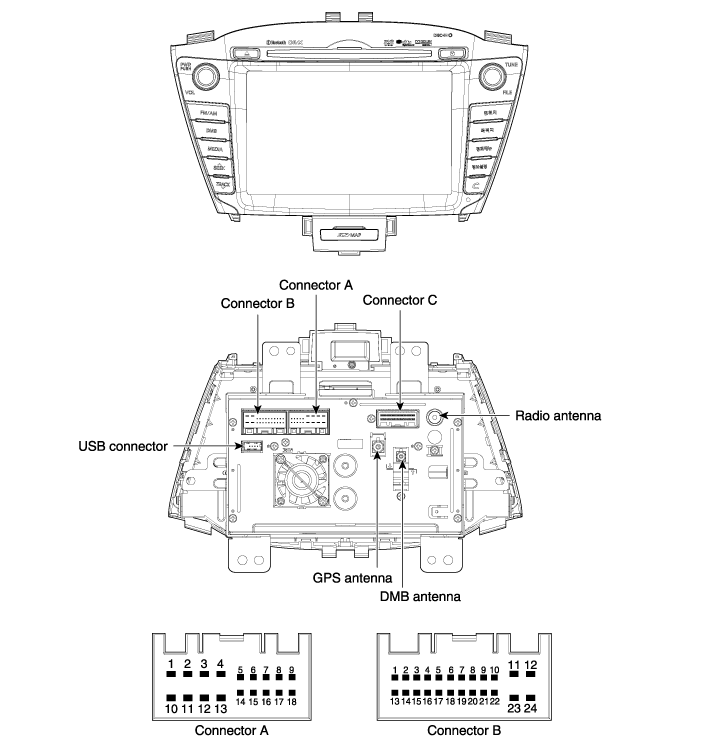 | Разъем головного устройства AVN (аудио/видео и навигация) |