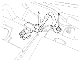 При зарядке аккумуляторной батареи заземлите отрицательную клемму вспомогательной аккумуляторной батареи на кузов автомобиля.