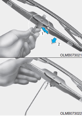 Во избежание повреждения рычагов стеклоочистителя или других компонентов обратитесь в авторизованный сервисный центр. Дилер HYUNDAI заменяет щетку стеклоочистителя.