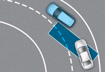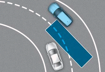 Помощь в предотвращении столкновений в слепых зонах может обнаружить транспортное средство на той же полосе при движении по кривым и активировать предупреждение или затормозить автомобиль.