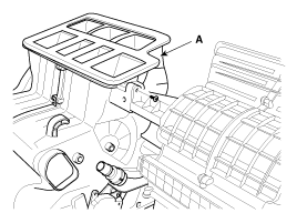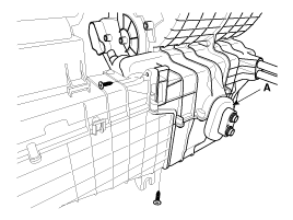 Снимите блок вентилятора (А) с блока отопителя, предварительно ослабив крепежный болт и 3 винта.