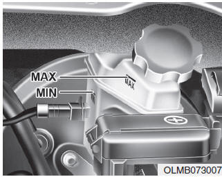Периодически проверяйте уровень жидкости в бачке. Уровень жидкости должен быть между отметками MAX и MIN на боковой стороне резервуара.