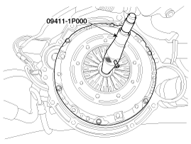 Установите диск сцепления и крышку с помощью SST (A: 09411-1P000).