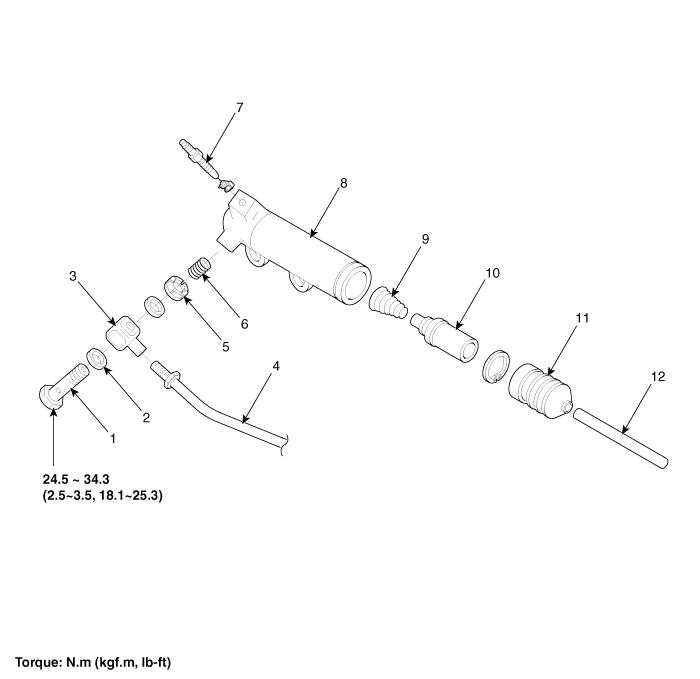 Hyundai Tucson (LM) 2010-2015 Руководство по ремонту / Система сцепления / Система сцепления / Компоненты цилиндра выключения сцепления и расположение компонентов