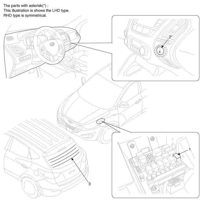 Hyundai Tucson: Обогрев заднего стекла / Компоненты и расположение компонентов