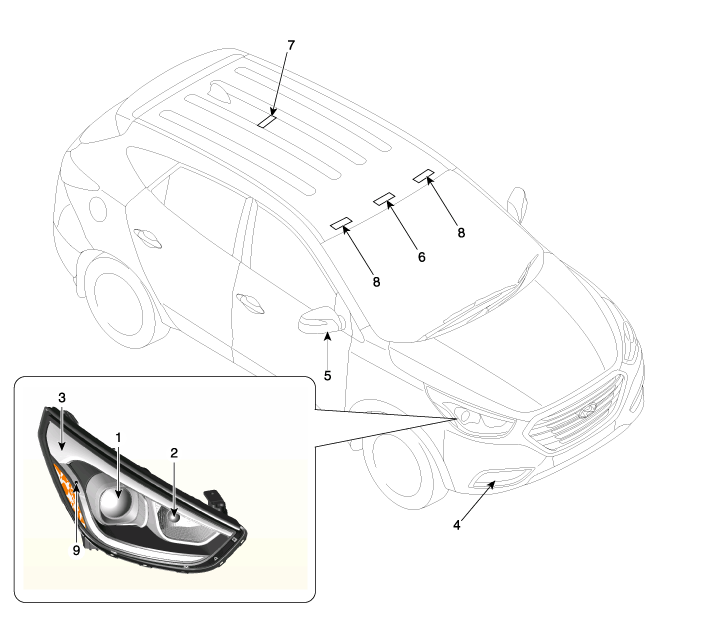Hyundai Tucson: Система освещения / Компоненты и расположение компонентов