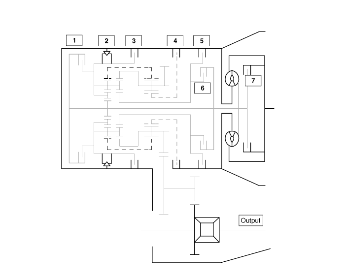 2. Обгонная муфта (OWC) 3. Низкий и задний тормоз (LR/B) 4. Понижающий тормоз (UD/B) |