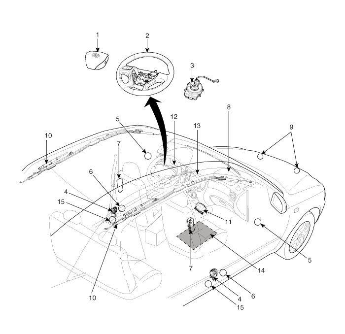 Замена компонентов после развертывания Перед выполнением любого ремонта SRS используйте GDS Pro для проверки коды неисправности. Обратитесь к списку диагностических кодов неисправностей для ремонта рела ...