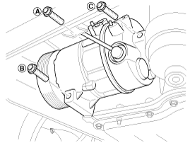 Убедитесь в длине крепежных болтов компрессора, а затем затяните их в порядке A>B>C.