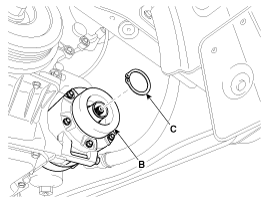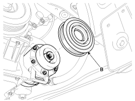 Отсоедините стопорное кольцо (А) и снимите шкив (В).